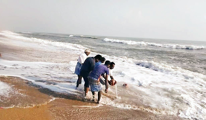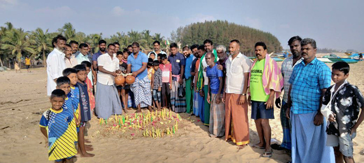 திருவள்ளூர் மாவட்டம், பழவேற்காடு பகுதியில் உள்ள வைரவன் குப்பம் கடற்கரையில் நேற்று 19 ஆம் ஆண்டு சுனாமி தினத்தினை அப்பகுதி வாழ் மீனவர்கள் அனுசரித்தனர். தொடர்ந்து, சுனாமி தாக்குதலின் காரணமாக உயிரிழந்த அவ்வின மக்களுக்கு மீனவர்கள் மெழுகுவர்த்தி ஏந்தி கண்ணீருடன் பாலை கடலில் கலந்து நினைவஞ்சலி செலுத்தினார்கள்.