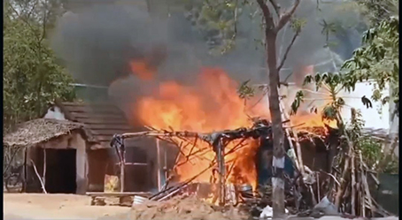 அத் தீ விபத்தின் போது எதிரே இருந்த அன்பழகன் மாடி வீட்டின் முன்பக்கம் இருந்த கீற்றுகொட்டகை அதேபோன்று உணவகத்தின் அருகில் இருந்த மாடிவீட்டின் மேற்புறம் இருந்த கீற்றுகொட்டகை என இரு இடங்களில் உள்ள கீற்றுக்கொட்டைகைகள் மீது தீ பொறி விழுந்ததில் அவைகள் முழுவதுமாக எரிந்து சேதமானது.