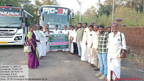 முனைவர் .பஞ்சவர்ணம் ஆராய்ச்சி நிலையத்தில் உள்ள ஊடுபயிர் சாகுபடி முறைகள் நாற்றங்கால் மேலாண்மை மற்றும் ஒருங்கிணைந்த பண்ணைய முறை முதலியவற்றை விவசாயிகளுக்கு நேரடியாக காண்பித்தார். மண் அறிவியல் துறை முனைவர் .செல்வமணி மண்வளத்தினை மேம்படுத்தும் தொழில்நுட்பங்களை விவசாயிகளிடம் தெரிவித்தார். மேலும் மண் பரிசோதனை முடிவின் அடிப்படையில் உரத்திணை பயன்படுத்திட வேண்டும் என கேட்டுக் கொண்டார். இவ்வாறு வெளி மாநிலமான கேரளாவிற்கு அழைத்துச் செல்லப்பட்ட மதுக்கூர் வட்டாரத்தை சார்ந்த 20 விவசாயிகள் தென்னை மர வளர்ப்பு மற்றும் மதிப்புக் கூட்டு தயாரித்தல் குறித்த பல்வேறு நலன் பயக்கும் தகவல்களையும், வழிக்காட்டுதல்களையும் வேளாண்மை பேராசிரியர்களிடம் கேட்டறிந்துக் கொண்டதாக விவசாயிகள் தெரிவித்தனர்.