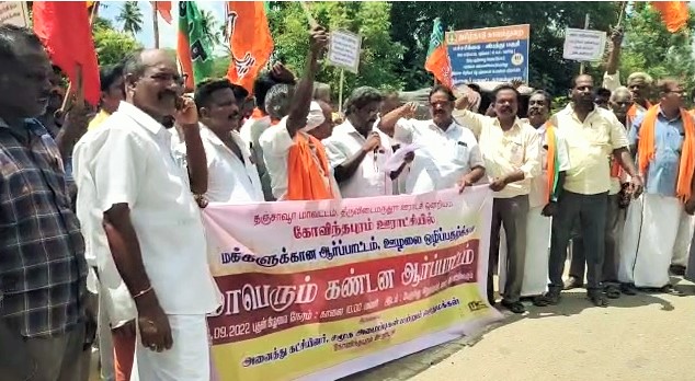 கும்பகோணம் அருகே உள்ள திருவிடைமருதூர் தாலுகா கோவிந்தபுரம் ஊராட்சி நிர்வாகத்தைக் கண்டித்து பாரதிய ஜனதா கட்சி சார்பில் கண்டன ஆர்ப்பாட்டம் நடைபெற்றது.