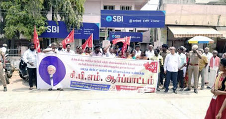 பின்னர் ஊர்வலமாக சென்று அப்பகுதியில் செயல்பட்டு வரும் பாரத் ஸ்டேட் வங்கியின் முன்பாகவும் மார்க்சிஸ்ட் கம்யூனிஸ்ட் கட்சியினர் கண்டன ஆர்ப்பாட்டத்தில் ஈடுபட்டனர்.
