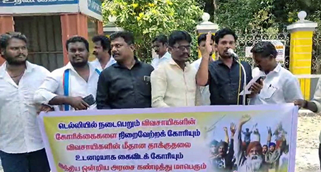 தஞ்சாவூர் மாவட்டம், கும்பகோணத்தில் தமிழ்நாடு குடியரசு கட்சி வீரத்தமிழர் கட்சி சார்பில் டெல்லியில் போராடுகின்ற விவசாயிகளின் கோரிக்கைகளை நிறைவேற்ற கோரியும் விவசாயிகள் மீது கொடூர தாக்குதல் நடத்துவதை உடனே நிறுத்த வலியுறுத்தி மத்திய அரசு கண்டித்து கண்டன ஆர்ப்பாட்டம் நடைபெற்றது.