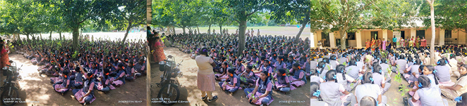 அதனைத்தொடர்ந்து, அந்நிறுவனத்தின் சார்பில் காஞ்சிபுரம் கிளாக்காடி மற்றும் அச்சரப்பாக்கம் பகுதிகளில் உள்ள அரசு பள்ளிகளில் கல்விப்பயிலும் மாணவர்களிடையே சுகாதாரம் குறித்த விழிப்புணர்வு ஓவியப்போட்டி, கட்டுரைப்போட்டி, பேச்சுப்போட்டி மற்றும் பாட்டுப் போட்டி நடத்தப்பட்டு அவர்களுக்கு சிறப்பு பரிசுகள் வழங்கப்பட்டது.