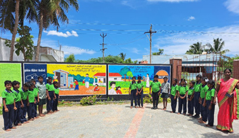 மேலும் அதில் தேர்ந்தெடுக்கப்பட்ட மாணவர்கள் வரைந்த ஓவியங்களை அப்பள்ளி வளாகத்தில் உள்ள சுற்றுச் சுவரில் அந்நிறுவனம் வரைந்துக்கொடுத்து அம்மாணவர்களின் திறமைகளுக்கு அங்கீகாரம் அளித்திடும் வகையில் அவர்களை பெருமைப் படுத்தினார்கள்.