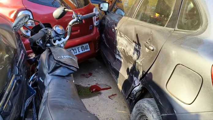 திருவள்ளூரில் திருத்தணி செல்லும் நெடுஞ்சாலையில் அமைந்துள்ள தனியார் உணவகத்திற்கு முன்பு நிறுத்தி வைக்கப்பட்டிருந்த வாகனங்களால் அப்பகுதியில் வேகமாக வந்த வேன் மோதி விபத்து ஏற்பட்டது. அதில் 4 நபர்களுக்கு கால் மற்றும் உடல்களில் படுகாயம் ஏற்பட்டது. மேலும் வாகனங்களும் பெருத்த சேதம் அடைந்தது. அதனால் அப்பகுதியில் சிறிது நேரம் பரபரப்பும் போக்குவரத்து பாதிப்பும் ஏற்பட்டது.