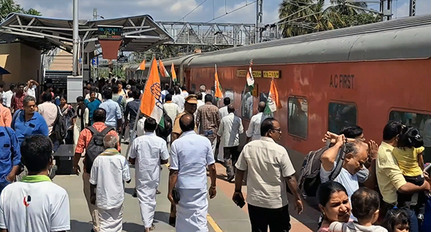 கும்பகோணத்திற்கு ரயில் மூலம் வருகை தந்த தமிழ்நாடு காங்கிரஸ் கட்சியின் தலைவர் கே எஸ் அழகிரிக்கு காங்கிரஸ் தொண்டர்கள் அவருக்கு சிறப்பான வரவேற்பளித்தனர்.