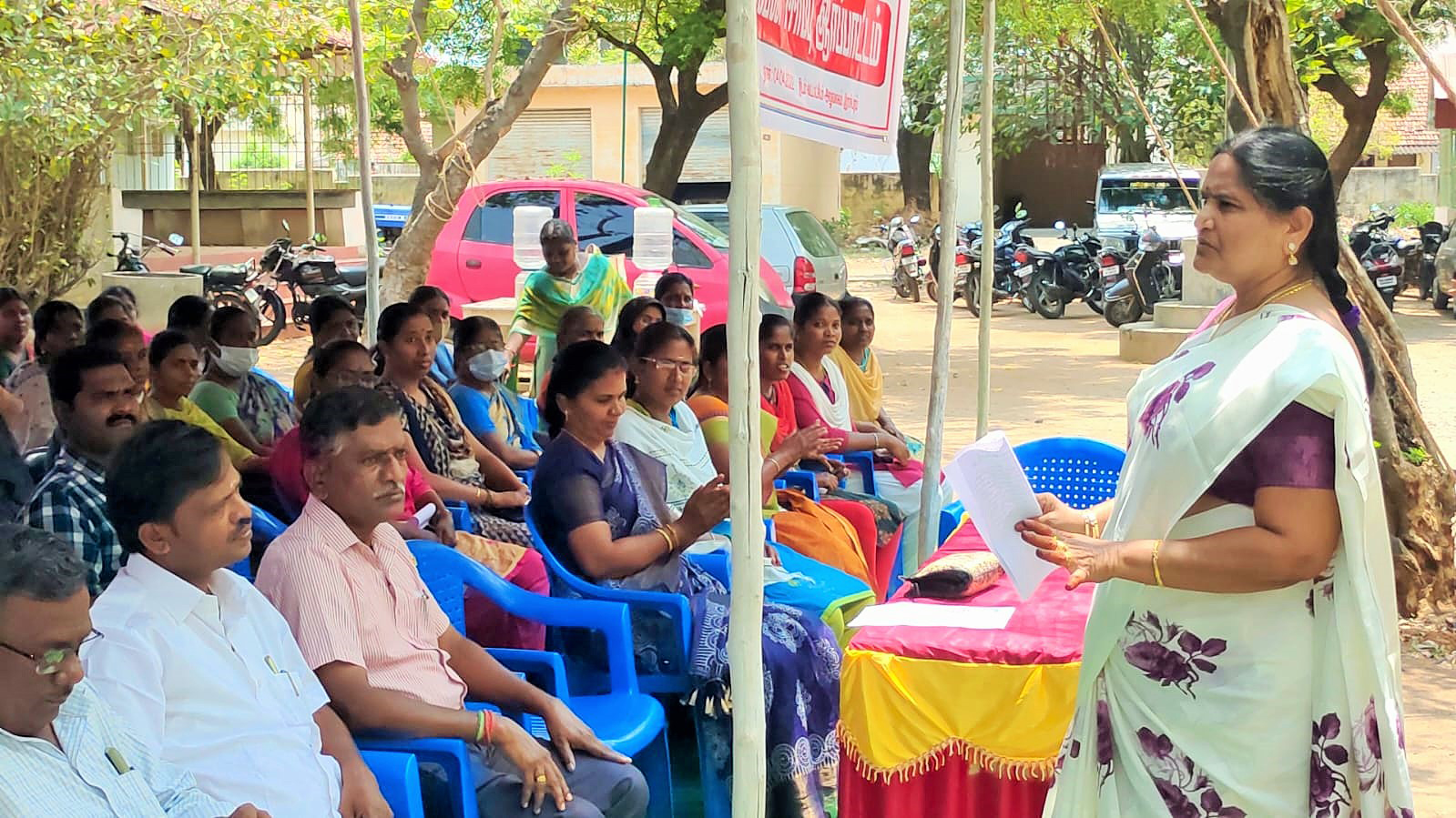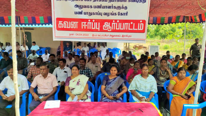இந்த கவனஈர்ப்பு ஆர்ப்பாட்டத்திற்கு, வட்டாட்சியர் அலுவலக முதுநிலை வருவாய் ஆய்வாளர் ராணி தலைமை வகித்தார்.