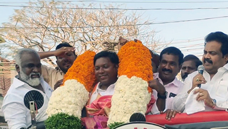 திருவள்ளூர் மாவட்டம், திருவள்ளூர் தனித்தொகுதி நாடாளுமன்ற திமுக கூட்டணியின் காங்கிரஸ் வேட்பாளர் சசிகாந்த் திருவள்ளுவர் அடுத்த கடம்பத்தூர் ஒன்றியத்துக்கு உட்பட்ட கிராமங்களில் திறந்த ஜீப்பில் சென்று தீவிர பரப்புரை மேற்கொண்டு மக்களிடம் கை சின்னத்திற்கு வாக்கு சேகரித்தார்.