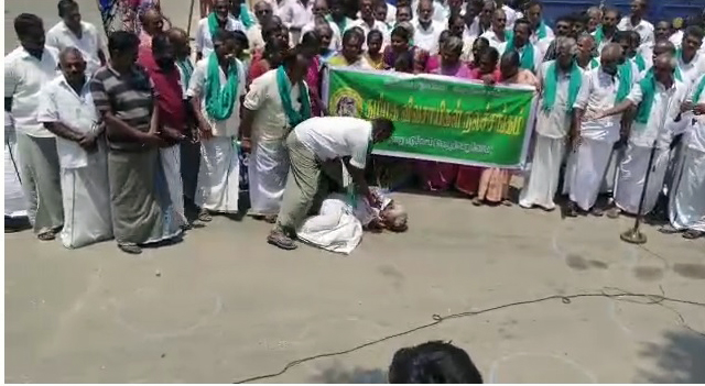 இந்த ஆர்ப்பாட்டத்தில் 100- க்கும் மேற்பட்ட விவசாயிகள் கண்டன ஆர்ப்பாட்டத்தில் பங்கேற்று கோரிக்கை முழக்கங்களை எழுப்பினார்கள். இந்நிலையில் அக் கோரிக்கை முழக்க ஆர்ப்பாட்டத்தில் ஈடுப்பட்டு வந்த பருத்தி விவசாயி ஒருவர் கடுமையாக அடித்த கோடை வெயிலிலன் தாக்கத்தின் பாதிப்பால் திடீரென அக்கூட்டத்தில் மயங்கி விழுந்தார்.
