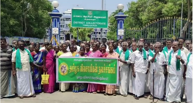 திருவாரூர் மாவட்ட ஆட்சியர் அலுவலகம் முன்பு தொடர் கோடை கனமழையால் சேதமடைந்த கோடை பயிரான பருத்திக்கு விவசாயிகளுக்கு ஏக்கர் ஒன்றுக்கு 35 ஆயிரம் நிவாரணம் வழங்க கோரியும், சரியான முறையில் வேளாண்மை துறை அதிகாரிகள் கணக்கெடுப்பு நடத்த வேண்டும் எனவும் கோரிக்கை வைத்து தமிழக விவசாயிகள் நல சங்கம் சார்பாக கண்டன ஆர்ப்பாட்டம் நடைபெற்றது.