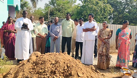 திருவள்ளூர் அருகே CSI தொடக்கப்பள்ளி புதிய கட்டிடம் கட்டும் பணியை திருவாலங்காடு ஒன்றிய தலைவர் ஜீவா விஜயராகவன் தொடங்கி வைத்தார்.
