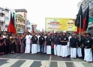 அதிமுக சார்பில் காஞ்சிபுரத்தில் நடைப்பெற்ற மிகப் பிரமாண்டமான மனிதச் சங்கிலிப் போராட்டம் ..