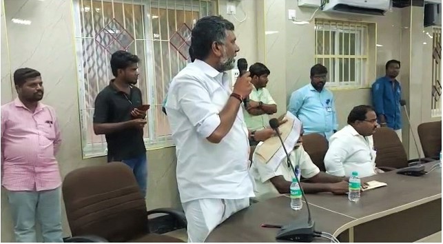 இந்நிலையில் ஒருக் கட்டத்தில் திமுக மன்ற உறுப்பினர் ரஜினிசின்னா என்பவர் பேசுகையில், தமிழகத்தில் பாலாறும் தேனாறும் ஓடும் என மக்கள் நம்பி வாக்களித்த நிலையில், நிதி நெருக்கடியால் திருவாரூரில் சாக்கடை கூட ஒழுங்காக ஓட வழி வகையில்லை என தெரிவித்தார். தொடர்ந்து தனது வார்டுக்கு சாலை வசதி கேட்டு பலமுறை கோரிக்கை விடுத்தும் இதுவரை நிறைவேற்றப்படவில்லை எனவும் அப்போது அவர் புகார் தெரிவித்தார்.