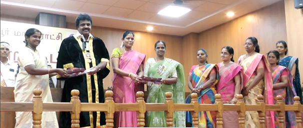 எனது சகோதரிக்கு மகளிர் தின வாழ்த்துகள் என துணை மேயர் டாக்டர். அஞ்சுகம் பூபதிக்கு வாழ்த்து கூறிய மேயர் சண். இராமநாதன் அவருக்கு பட்டுபுடவை பரிசாக வழங்கினார்.