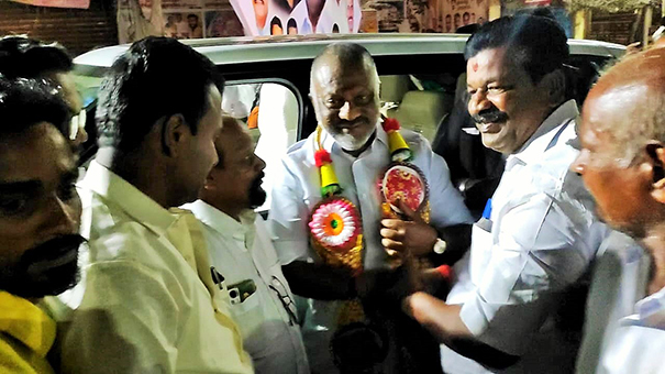 தஞ்சை மாவட்டம் பாபநாசத்திற்கு வருகை தந்த அதிமுக ஒருங்கிணைப்பாளர் ஓ. பன்னீர் செல்வத்திற்கு, நேற்றிரவு அப்பகுதி அதிமுக தொண்டர்கள் உற்சாக வரவேற்பளித்தனர்.