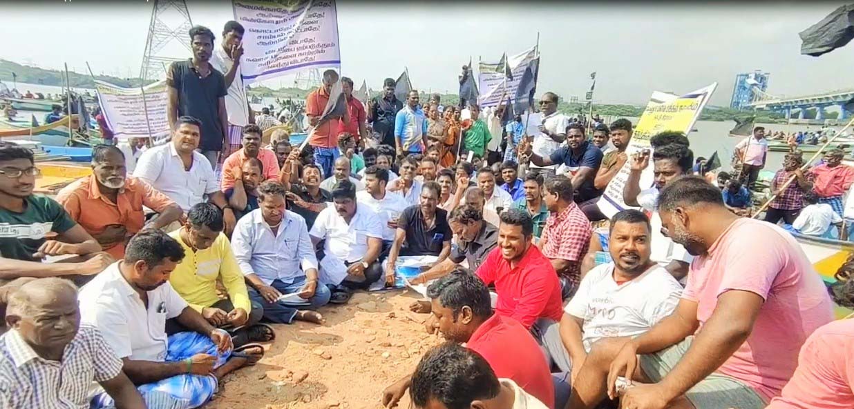 மேலும் இப்போராட்டத்தில் பங்கேற்றுள்ள எட்டுக் கிராம மீனவர்கள் மற்றும் கிராம மக்கள் என ஏராளமானவர்கள் தங்கள் கைகளிலும் படகுகளிலும் கருப்பு கொடிகள் ஏந்தி மின்கோபுரம் அமைக்கும் பணிக்கு எதிர்ப்பு தெரிவித்தும், முழக்கங்களை எழுப்பியும் போராடி வருகின்றனர்.