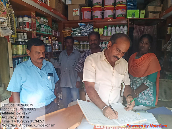 தஞ்சாவூர் மாவட்டம் கும்பகோணம், அம்மாபேட்டை, திருவிடைமருதூர், பாபநாசம் வட்டாரங்களில் உள்ள தனியார் விதை விற்பனை நிலையங்களில் தஞ்சாவூர் விதை ஆய்வு துணை இயக்குனர் முனைவர் வினாயகமூர்த்தி மற்றும் கும்பகோணம் விதை ஆய்வாளர் (பொ) நவீன்சேவியர் கடந்த (17.10.2022) அன்று ஆய்வு மேற்க்கொண்டார்கள்.