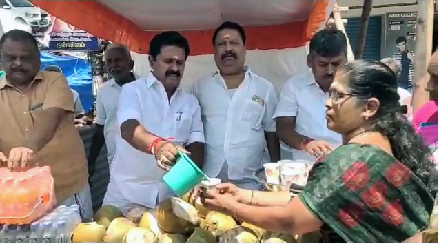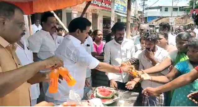 மேலும் இக்கோடைக்கால நீர்மோர் பந்தலில், தர்பூசணி, இளநீர், குளிர்பானங்கள் உள்ளிட்ட கோடை காலத்திற்கு ஏற்ற சுவையான நீர் மோர் உள்ளிட்டவைகளை பொதுமக்களின் தாகம் தீர முன்னாள் அமைச்சர் காமராஜ் வழங்கினார்.