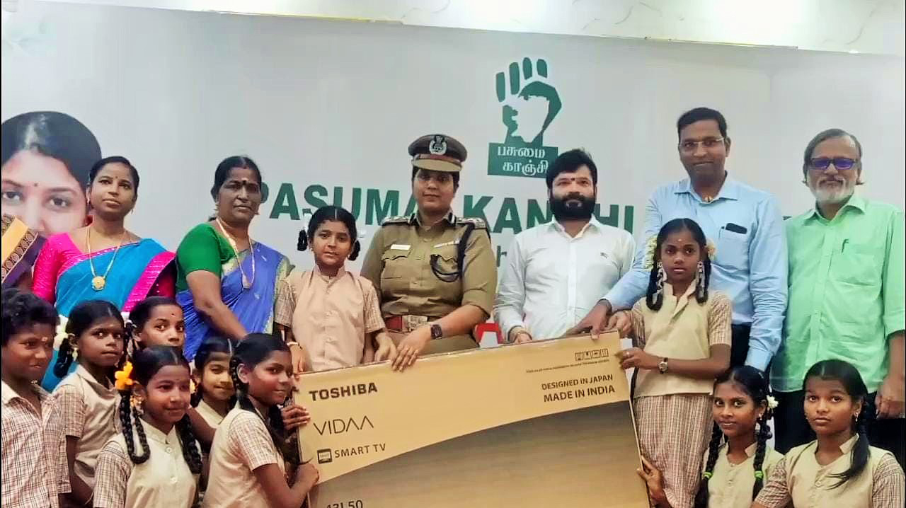 விழாவில் பங்கேற்ற காஞ்சிபுரம் சரக டிஐஜி எம்.சத்தியப்பிரியா தியாகி நடுநிலைப்பள்ளிக்கு தொலைக்காட்சியையும், பள்ளி மாணவர்களுக்கு கல்வி உபகரணங்களையும் வழங்கிய பின்னர் பேசியது..