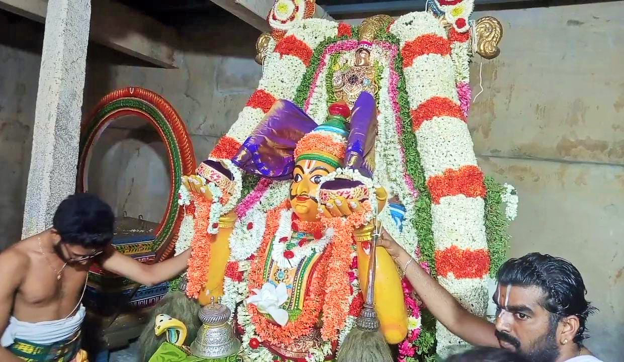 பிரம்மோற்சவத்தின் 3ம் நாளான இன்று கருடசேவை உற்சவம் நடைபெற்றது. கருடசேவை உற்சவத்தை ஒட்டி வைகுண்ட பெருமாளுக்கு சிறப்பு அபிஷேக ஆராதனைகள் செய்து சிறப்பு அலங்காரத்தில் மஞ்சள் பட்டு உடுத்திய கருட ஆழ்வார் மீது எழுந்தருளினார்.