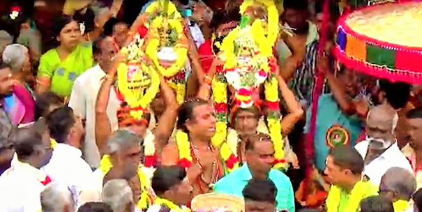 புனித தீர்தங்கள் அடங்கிய கடங்களை சிவாச்சாரியார்கள் சுமந்து வேத மந்திரங்கள் முழங்க கோவிலை வலம் வந்து, அதனைத்தொடர்ந்து, சிவாச்சாரியார்கள் பாலதண்டாயுதபானி சுவாமி ராஜகோபுரம் மற்றும் 35 அடி உயர பத்துமலை முருகன் சிலை உள்ளிட்ட பரிவார தெய்வங்களின் விமான கலசங்களுக்கு புனித நீர் ஊற்றி கும்பாபிஷேகத்தினை நடத்தி வைத்தனர்.
