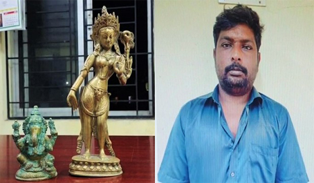 அவரிடம் இருந்து கைப்பற்றப்பட்ட சிலைகளில் ஒன்று காக்கும் கடவுளாக அறியப்படும் புத்தமத அபலோகிதேஸ்வராவின் மனைவி தாராதேவியின் சிலை என்றும், தாராதேவியின் வழிபாடானது திபெத் நாட்டில் தோன்றியது என்றும், இச்சிலையானது சுமார் 700 ஆண்டு தொன்மையானது என்று தொல்லியல் ஆய்வாளர்களால் கருதப்படுகிறது.