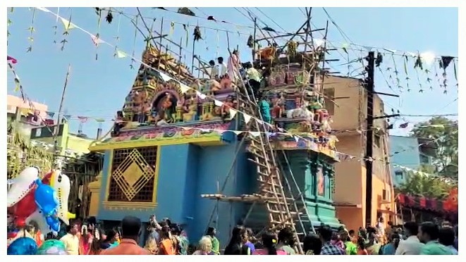 தொடர்ந்து 19ம் தேதி புதன் கிழமை இருவேளை யாகசாலை பூஜைகள் நடைபெற்றதை தொடர்ந்து இன்று 20ம் தேதி வியாழக்கிழமை 4ம் கால யாகசாலை பூஜை பூர்ணாஹ_தியுடன் நிறைவு பெற்றதை தொடர்ந்து மகா தீபாராதனை செய்யப்பட்டு, நாதஸ்வர மேள தாள மங்கல வாத்தியங்கள் முழங்க, பூ மாரி பொழிய கடங்கள் புறப்பாடும் அதனை அடுத்து, மூலவர் விமான கலசம் மற்றும் 11 ராஜகோபுர கலசங்களுக்கும் சிறப்பு பூஜைகள் செய்த பின்னர் மகா கும்பாபிஷேகம் சிறப்பாக நடைபெற்றது,