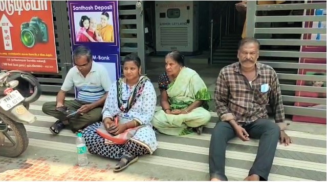 பத்து ஆண்டு கால திரும்ப செலுத்தும் வரம்பிலான ரூபாய் பத்து லட்சம் வீட்டு கடனிற்கு, 3 ஆண்டுகளில் மட்டும் ரூபாய் 17 லட்சம் தாங்கள் செலுத்திய பிறகும், மேலும் பல லட்சம் கட்ட வேண்டும் இல்லை என்றால் வீடு ஏலத்திற்கு வரும் என்றும், சம்மந்தப்பட்ட ரூபாய் 2 கோடி மதிப்பிலான சொத்தை அபகரிக்க முயலும் அரசியல் பிரமுகருக்கு உடந்தையாக அவரிடம் லஞ்சம் பெற்றுக் கொண்டு, கந்து வட்டிக்காரர்களை போல மிரட்டும் கிளை மேலாளர் தாமரை செல்வன் மீது புகார் தெரிவித்தவாறும், அவரது நடவடிக்கையை கண்டிப்பதாகக்கூறி, இன்று வீட்டு கடன் பெற்ற ரவிச்சந்திரன், அவரது மனைவி டைசி ராணி, மகள் அறிவுக்கரசி, மகன் அருள்ஜெயந்த்தேவன் ஆகிய நால்வரும் வங்கி கிளை முன்பு அமர்ந்து தர்ணா போராட்டத்தை துவங்கினர்.