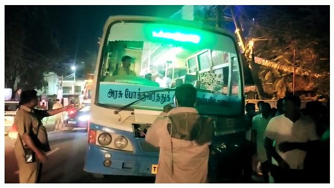 நேற்று முன் தினம் இரவு தஞ்சாவூரில் இருந்து கும்பகோணத்திற்கு அரசு பேருந்தில் பலர் பயணம் செய்திருந்த நிலையில்,