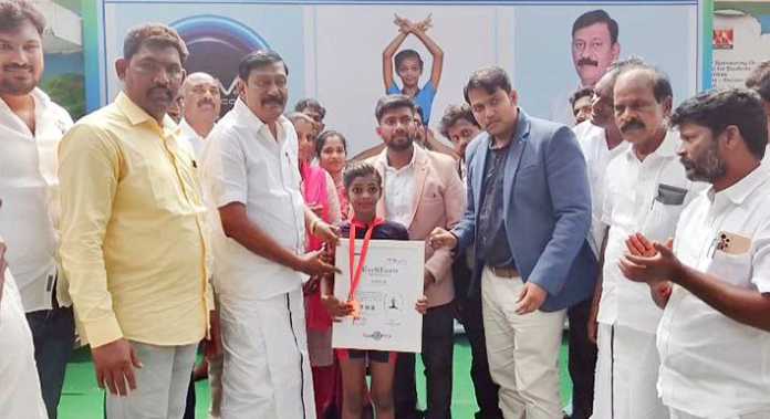 அந்நிகழ்வில் மாணவி பூஜ்யாஸ்ரீ தனது இரண்டு கால்களையும் பின்புறமாக வளைத்து கால்களின் இரண்டு முட்டி பகுதியையும் முன்புறமாக இணைக்க கூடிய மிகவும் கடினமான திவி பாத சிராசாசன யோகாவை 2 நிமிடத்தில் 200 முறை செய்து உலக சாதனை படைத்துள்ளார்.. அவரின் அவ் உலக சாதனை நோவா உலக சாதனை புத்தகத்தில் இடம் பிடித்துள்ளது.