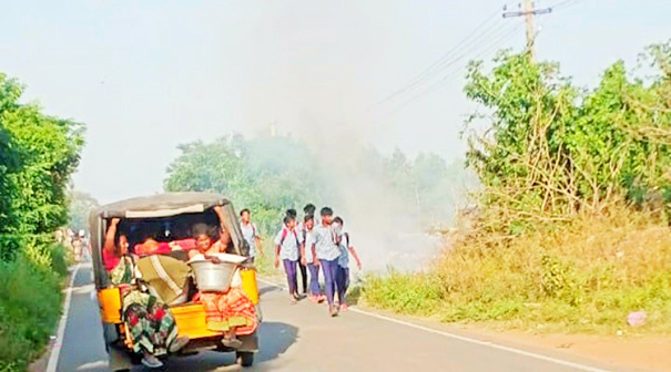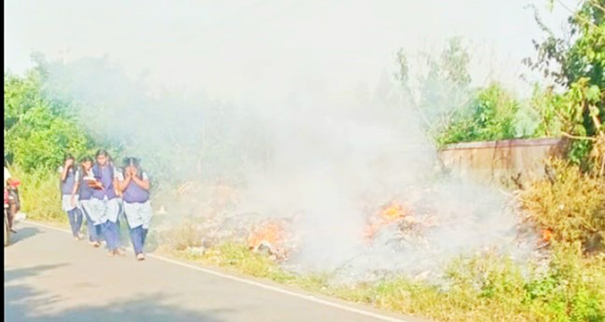 திருவள்ளூர் மாவட்டம் கும்மிடிப்பூண்டி அடுத்த எளாவூர் ஊராட்சிக்குட்பட்ட சுண்ணாம்பு குளம் பகுதியில் உள்ள சாலையோரத்தில் எரிக்கப்படும் குப்பை கழிவுகளால் அவ்வழியே பள்ளிக்குச் செல்லும் மாணவர்கள் பெரிதும் பாதிப்புக்கு உள்ளாகி வருகின்றனர்.