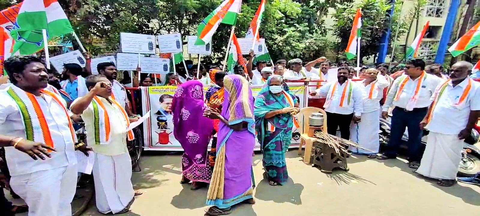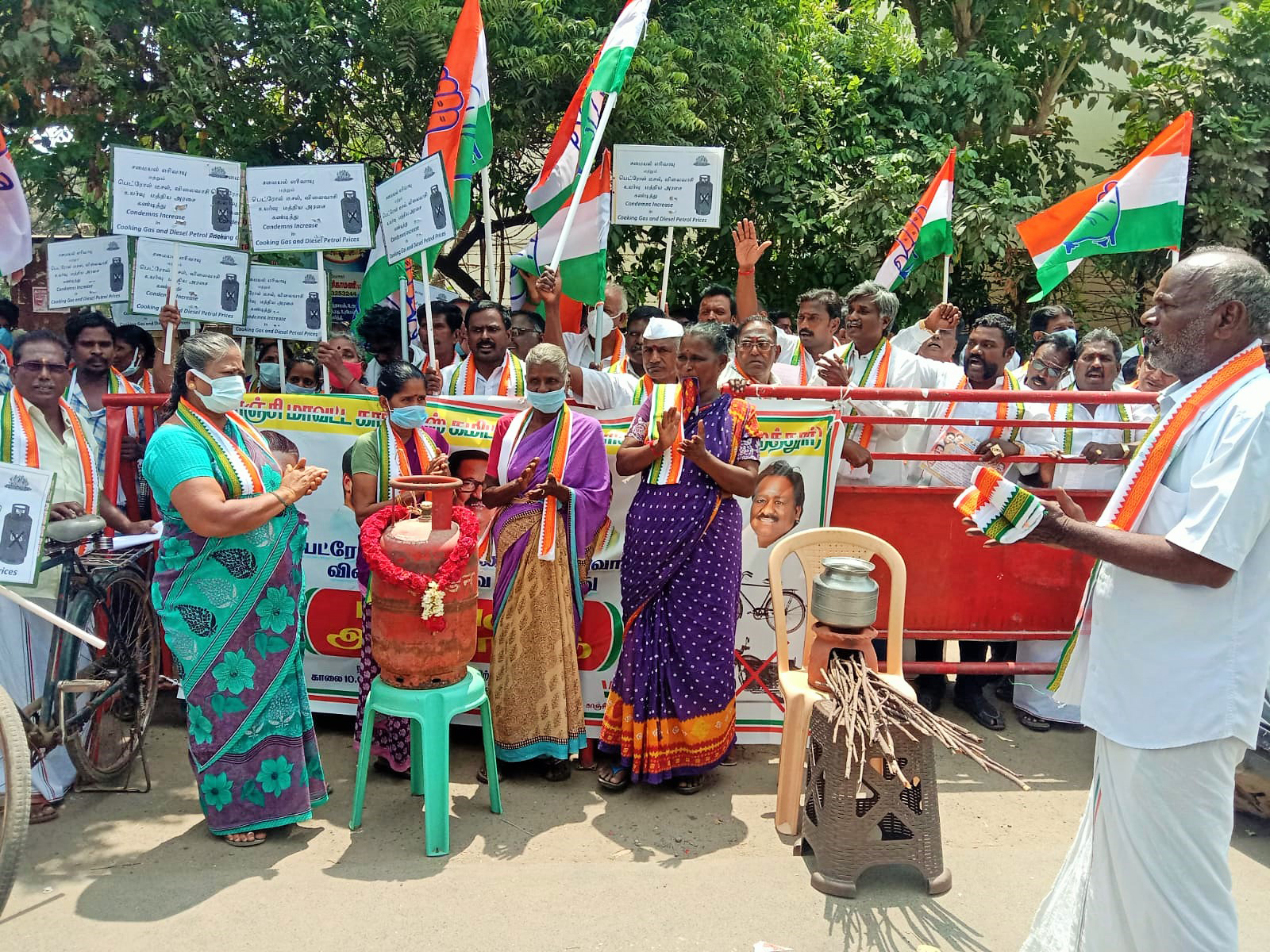 இந்த ஆர்ப்பாட்டத்தில் பெட்ரோல், டீசல், சமையல் எரிவாயு விலைவாசி உயர்வை குறைக்க மத்தியரசுக்கு எதிராக கண்டன முழக்கம் எழுப்பி ஆர்பாட்டத்தில் ஈடுப்பட்டனர். முன்னதாக இந்த ஆர்ப்பாட்டத்தில் கலந்து கொண்ட காங்கிரசார் ஸ்கூட்டருக்கு மாலை அணிவித்தும், விறகு அடுப்பில் சமையல் செய்வது போன்றும் நூதன முறையில் மத்திய அரசுக்கு எதிரான தங்களது எதிர்ப்பினை தெரிவித்தனர். அதனை தொடர்ந்து மத்திய அரசு மற்றும் பிரதமர் நரேந்திர மோடிக்கு எதிராக கையில் விளம்பர பதாகைகளை ஏந்தியவாறு கண்டன கோஷங்களை எழுப்பினர். ஆர்ப்பாட்டத்தில் கலந்து கொண்ட பெண்கள் சமையல் எரிவாயு சிலிண்டருக்கு மாலை அணிவித்து ஒப்பாரி வைத்து தங்களது எதிர்ப்பினை பதிவு செய்தனர். இந்த ஆர்ப்பாட்டத்தில் ஏராளமான காங்கிரஸ் கட்சியினர் கலந்து கொண்டனர். மத்திய அரசு உடனடியாக பெட்ரோல், டீசல் மற்றும் சமையல் எரிவாயு சிலிண்டர் விலையை குறைக்கவில்லை என்றால் மீண்டும் இது போன்ற போராட்டம் தமிழகமெங்கும் நடக்கும் என்று ஆர்ப்பாட்டத்தில் ஈடுபட்ட காங்கிரஸார் தெரிவித்தனர். காங்கிரஸ் கட்சி வர்த்தக பிரிவு மாவட்ட தலைவர் வி எல் சி.ரவி தலைமையில் நடைப்பெற்ற இந்த ஆர்ப்பாட்டத்தில் திரளானவர்கள் கலந்துக் கொண்டனர்.