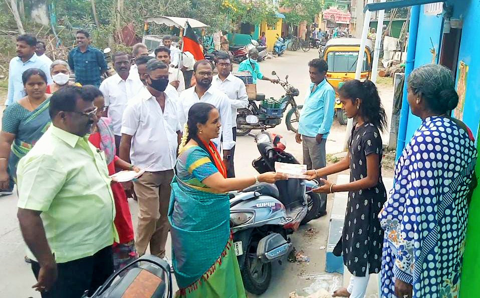 அதுப்போன்று, காஞ்சிபுரம் மாநகராட்சி 9-வது வார்டில் போட்டியிட்டு வெற்றி பெற்ற திமுக வேட்பாளர் தலைமை கழக அறிவிப்பின் படி மறைமுக தேர்தலில் மாநகராட்சி மேயராக தேர்வு செய்யப்பட்ட மகாலட்சுமி யுவராஜ் இன்று காஞ்சிபுரம் மாநகராட்சிகுட்பட்ட 9-வது வார்டு பாவா தெரு, ஏகாம்பரநாகர் சன்னதி தெரு, பாண்டவ பெருமாள் கோயில் தெரு உள்ளிட்ட பல பகுதிகளில், வீடு வீடாக சென்று தனக்கு வாக்கு அளித்து வெற்றி பெற செய்த வாக்காளர்களுக்கு இனிப்புகள் மற்றும் துண்டு பிரசுரங்கள் வழங்கி தனது நன்றியினை அவர்களிடத்தில் தெரிவித்தார்.