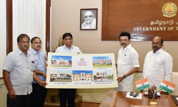 முதலமைச்சர் இன்று (7.6.2022) தலைமைச் செயலகத்தில், பொதுப்பணித் துறையால் கட்டப்படவுள்ள அரசு பள்ளிக் கட்டடம், மாணவ மாணவியர் தங்கும் விடுதி, அரசு ஆரம்ப சுகாதார நிலையம், சார்பதிவாளர் அலுவலகம், நகர் ஊரமைப்பு இயக்குநர் அலுவலகம் ஆகிய கட்டடங்களின் முகப்புத் தோற்ற வரைபடத்தை வெளியிட்டார்.