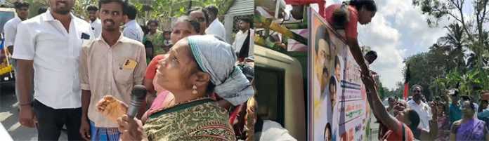 அப்போது மகாராஜபுரம் பகுதியில் பிரச்சாரம் மேற்கொண்ட போது வேட்பாளரின் பிரச்சார வாகனத்தின் முன்னாள் சென்ற எம்பிக்கள் ராமலிங்கம், கல்யாணசுந்தரம் வாகனத்தினை நிறுத்தி பெண்கள் பயணிகள் பேருந்து நிழற்குடை கேட்டு மூன்று ஆண்டுகளாக போராடி வருவதாகவும், கொளுத்தும் வெயிலில் பேருந்துக்காக நீண்ட நேரம் நிற்க முடியவில்லை. மயங்கி கீழே விழும் சூழல் தொடர்ந்து வருகிறது என வேதனையுடன் என தெரிவித்தனர்.