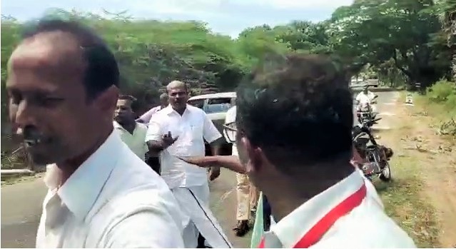 முதல்வர் வருகையை முன்னிட்டு செய்தியாளர்கள் செய்தி சேகரித்து விட்டு திரும்பி வரும் போது, நன்னிலம் அருகே, தென்குடி பகுதியில் காரை சாலையின் நடுவில் நிறுத்தி ஊராட்சி மன்ற தலைவரின் கணவர் திமுக பிரமுகர் பாலமுத்து, அந்த வழியே வந்த செய்தியாளர்ளின் வாகனத்தை மறித்து, தகராறு செய்து வாக்கு வாதத்தில் ஈடுபட்டார்.
