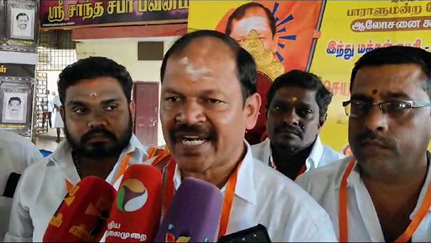 மேலும் கும்பகோணத்தை தனி மாவட்டமாக தேர்தல் அறிவிப்புக்கு முன்பாக தமிழக அரசு அறிவிக்க வேண்டும். இதை போல பொள்ளாச்சி போன்ற மாவட்டங்களையும் அறிவிக்க வேண்டும். இல்லாவிட்டால் மிக பெரிய போராட்டம் நடத்தப்படும். ஹிந்து என்ற பெயர் இருப்பதால் தேர்தல் ஆணையத்தில், எங்கள் அமைப்பை கட்சியாக பதிவு செய்ய மறுக்கிறார்கள். முஸ்லீம் லீக் போன்ற கட்சிகள், ஒரு மதத்தின் பெயரில் கட்சி பதிவு செய்துள்ள சூழலில், ஹிந்து என்ற மதத்தின் பெயரில் பதிவு செய்ய தேர்தல் ஆணையம் மறுத்து வருகிறது. எனவே அதற்காக சட்ட போராட்டம் நடத்தி வருகிறோம். என்று தெரிவித்தார். தொடர்ந்து செயற்குழு பொதுக்குழு கூட்டத்தில் பல்வேறு தீர்மானங்கள் நிறைவேற்றப்பட்டன.