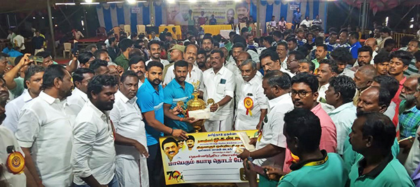 மேலும் தொடர்ந்து, கால் இறுதி சுற்றில் வெற்றி வாய்ப்பை இழந்த அணிகளுக்கு தலா ரூ. 10,070 ரொக்கப்பணத்தை காளிமுத்து, மக்கள் கார்த்தி, தங்கதுரை ஆகியோர்களால் வழங்கப்பட்டது.