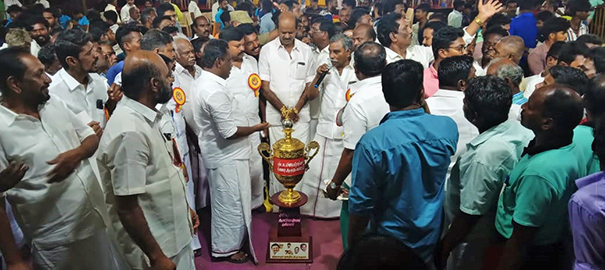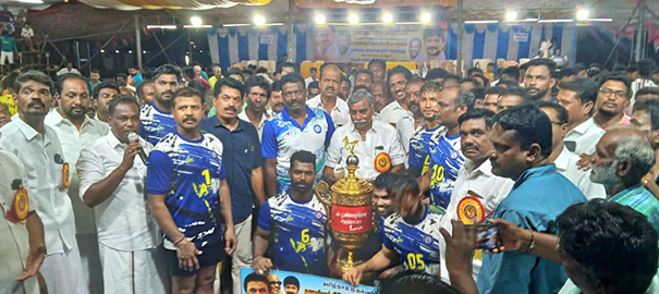 மேலும் வேற்றிப் பெற்ற நான்கு அணிகளுக்கும் பரிசு கோப்பைகளை ஒன்றிய பெருந்தலைவர் புலிவலம் ஏ. தேவா வழங்கினார். சிறந்த ஆட்ட வீர ர்களுக்கான பரிசுகளை துரைராஜ் அவர்களின் நினைவாக ஆனந்தசுந்தரம் மற்றும் பஹஃருதீன் ஆகியோர் வழங்கினார்கள்.
