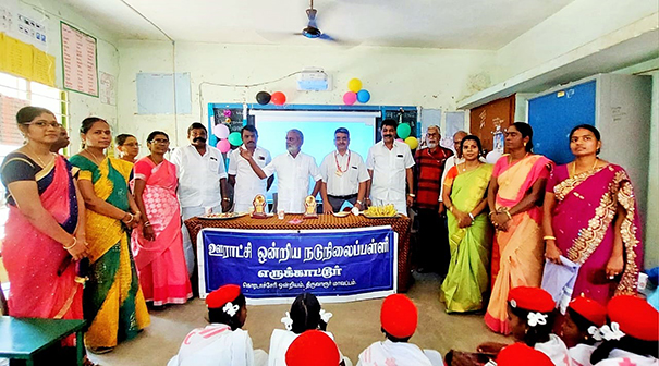 திருவாரூர் மாவட்டம் கொரடாச்சேரி ஒன்றித்திற்குட்பட்ட எருக்காட்டூர் ஊராட்சி மற்றும் ஒன்றிய நடுநிலைப்பள்ளியில் ஓ.என்.ஜி சி சமுக பொறுப்புணர்வு மேம்பாட்டு திட்டத்தின் கீழ் சுமார் ரூ. 16.16 இலட்சம் மதிப்பீட்டில் கண்காணிப்பு கேமரா மற்றும் ஸ்மார்ட் வகுப்பறைகள் அமைக்கப்பட்டு அதற்கான திறப்பு விழா நடைப்பெற்றது.