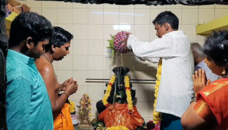 முன்னதாக கும்பாபிஷேக விழாவை யொட்டி கோவில் வளாகத்தில் யாக சாலை அமைக்கப்பட்டு பூஜை, கோ பூஜை, லஷ்மி ஹோமம, விசேஷ திரவ்ய ஹோமம் பூர்ணாஹதி நடைபெற்று இன்று காலை கஜ பூஜை, அஸ்வ பூஜைகள் செய்து மஹா பூர்ணாஹதி தீபாரதனைகள் நடைபெற்றது.
