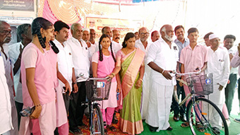 திருவள்ளூர் மாவட்டம் மீஞ்சூரில் அமைந்துள்ள டிவிஎஸ் அரசு மேல்நிலை பள்ளியில் 11,மற்றும் 12,வகுப்பு கல்வி பயிலும் மாணவர்களுக்கு தமிழக அரசின் விலையில்லா மிதிவண்டி வழங்கும் விழா பள்ளியின் வளாகத்தில் நடைபெற்றது.