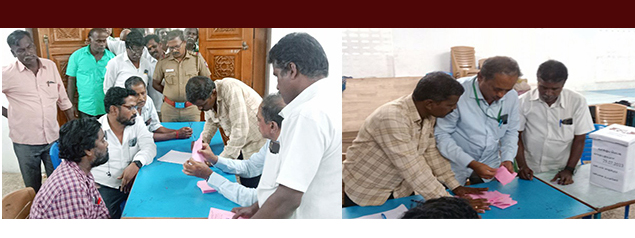 இத்தேர்தலுக்கான வாக்குப் பதிவு போக்குவரத்து பணிமனைக்கு எதிரே உள்ள தனியார் திருமண மண்டபத்தில் தேர்தல் ஆணையர் கோ.சி.வள்ளுவன் தலைமையிலும், தேர்தல் அலுவலர் பி.எஸ்.கார்த்திகேயன் முன்னிலையிலும் நடைப்பெற்றது.