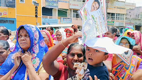 புதுச்சேரி அதிமுக பிரச்சாரத்தில் குழந்தையுடன் பெண்கள் தலையில் முக்காடு போட்டுக் கொண்டு உச்சி வெயிலில் கலந்து கொண்டு அவதிக்கு உள்ளாகினார்கள்.