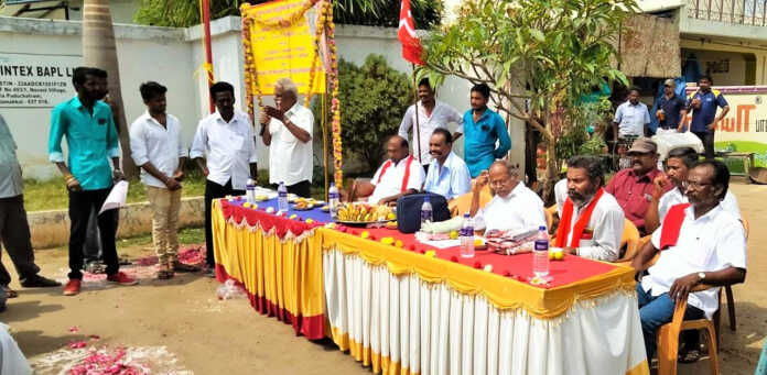 இதில் சங்க கிளைத் தலைவர் வி.பாஸ்கர் தலைமை வகித்தார். செயலர் கே.ராஜா முன்னிலை வகித்தார். இதில் ஏஐடியூசி மாவட்டத் தலைவர் எஸ்.மணிவேல், ஏஐடியூசி கட்டிடதொழிலாளர் சங்க மாவட்டத் தலைவர் டி.என்.கிருஷ்ணசாமி ஆகியோர் பங்கேற்று கொடியேற்றி, சங்க பெயர் பலகை திறந்து வைத்துப் பேசினர்.