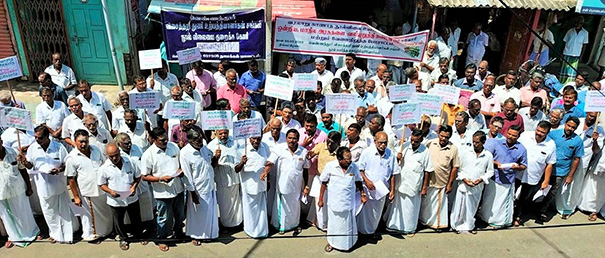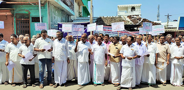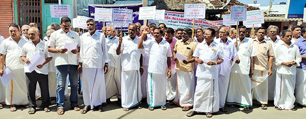 நாமக்கல் மாவட்டம் இராசிபுரம் அடுத்த வெண்ணந்தூரில் நூல் விலை உயர்வை கண்டித்து ஆர்ப்பாட்டம் நடந்தது. இந்த ஆர்ப்பாட்டத்திற்கு, வெண்ணந்தூர் விசைத்தறி துணி உற்பத்தியாளர்கள் சங்க தலைவர் S.B. மாதேஸ்வரன் தலைமை வகித்தார். துணைத் தலைவர் SNKP.செல்வம் முன்னிலை வகித்தார்.