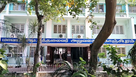 தேர்தல் தேதி அறிவித்த நிலையில் காஞ்சிபுரம் மாவட்ட ஆட்சியர் அலுவலக அறையில் இருந்த முதல்வர்கள் படம் அகற்றப்பட்டும், தேர்தல் நடத்தும் அலுவலர் என்ற ஸ்டிக்கர் பொருத்தப்பட்டது.