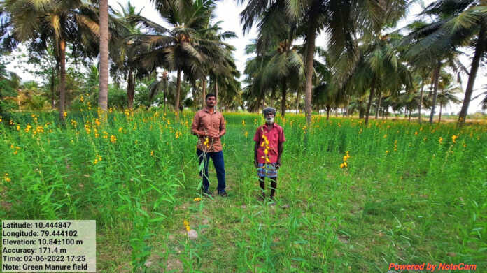 அக்டோபர் 15 தேதிகளில், பருவமழையும் எதிர்பார்க்கப்படுவதால் விவசாயிகள் குறுவை விதைப்பு மற்றும் நடவு பணிகளை ஜூலை முதல் வாரத்திற்குள் முடித்துக் கொள்ள கேட்டுக்கொள்ளப்படுகிறது. இதன் மூலம் அறுவடை செய்யப்படும் குறுவை நெல் பயிரானது மழை பாதிப்பின்றி அறுவடை செய்ய வாய்ப்பு உள்ளது. எனவே விவசாயிகள் நெல் சாகுபடி துவங்குவதற்கு முன் சணப்பு பயிரினை பசுந்தாள் உர பயிராக பயிரிட்டு உரச் செலவை குறைக்க முடியும் இதற்கு ஏக்கருக்கு 20 கிலோ வீதம் சணப்பை விதைப்பு செய்ய வேண்டும். சணப்பு மிக வேகமாக வளரக்கூடிய பயிர். 7 வாரத்தில் பூப்பூக்க துவங்கிவிடும். 2 மீட்டர் உயரம் வரை வளரக்கூடியது. இதன் ஆழமான வேர் அமைப்பினால் மண்ணுக்குள் நன்றாகவே ஊடுருவி மண்ணின் கட்டமைப்பையும் மாற்றக்கூடியது. மண்ணுக்கு காற்றோட்டத்தையும் அதிகரிக்கும். பிற பயிர்களுடன் போட்டியிடும் தன்மை அற்றது. இப்பயிரின் முக்கியத்துவமே இது தழைச்சத்தை காற்றிலிருந்து கிரகித்து ரைசோபியம் எனும் நுண்ணுயிர் மூலம் வேர் முடிச்சுகளில் வைத்திருந்து பயிருக்கு அளிக்கக் கூடிய தன்மை உடையது. மண்ணிலும் தழைச்சத்தை அதிகரிக்கும். 7 வாரங்களில் இதை மண்ணில் மடக்கி உழுவதன் மூலம் ஏக்கருக்கு 5 டன் வரை தழைகளை மண்ணில் சேர்க்கும். எளிதாக மக்க கூடிய தன்மையும் உடையது. ஏக்கருக்கு 40 முதல் ஐம்பது கிலோ வரை தழைச்சத்தை மண்ணில் சேர்க்கும். மேலும், மண்ணில் கரிம வளமும் அதிகரிக்கிறது. இதனால் தேவையற்ற உரச் செலவை குறைக்கலாம். தழை சத்துக்காக யூரியா வாங்கி செலவழித்து பயிரிடுவதை காட்டிலும் பசுந்தாள் உரப் பயிர் சாகுபடி செய்து மண்ணில் மடக்கி உழுவதால் உரச் செலவை மிக எளிதாக குறைக்க முடியும். மண்ணில் கரிம அமிலங்கள் அதிகரிப்பதால் நுண்ணுயிர்களும் பெருகும் மண்ணின் கட்டமைப்பும் மாறும். எனவே விவசாயிகள் எளிய தொழில் நுட்பங்களைப் பயன்படுத்தி உரச் செலவை குறைக்கவும் மண்ணுக்கு வனப்பும் வளமும் தரும் சணப்பு போன்ற பசுந்தாள் உரப் பயிர்களை நெல் நெல் சாகுபடி துவங்குவதற்கு முன்னும் தென்னையில் ஊடுபயிராகவும் பயிரிட்டு பயன் பெற வேளாண்மை உதவி இயக்குனர் மதுக்கூர் கேட்டுக்கொண்டார்.