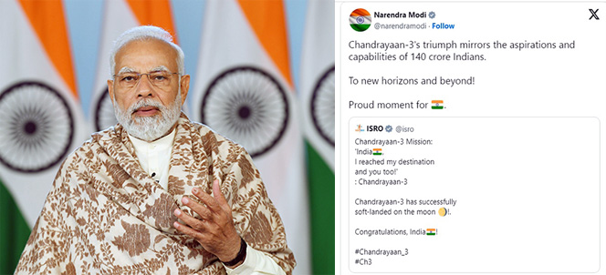 சந்திரயான் 3 யின் வெற்றி 140 கோடி இந்தியர்களின் ஆர்வம் மற்றும் திறன்களைப் பிரதிபலிக்கிறது என பிரதமர் நரேந்திர மோடி தெரிவித்துள்ளார்.