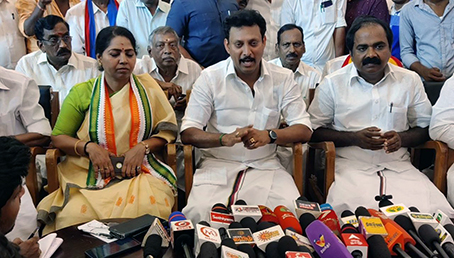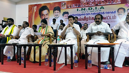 இந்தியா கூட்டணி கட்சியின் மயிலாடுதுறை பாராளுமன்ற தொகுதி செயல்வீரர்கள் கூட்டம் நடைபெற்றது. மயிலாடுதுறை பாராளுமன்ற தொகுதி காங்கிரஸ். வேட்பாளர் ஆர் சுதாவை அறிமுகப்படுத்தி சிறப்புரையாற்றிய பள்ளிகல்வித்துறை அமைச்சர் அன்பில் மகேஷ் பொய்யாமொழி கூட்டம் முடிந்து செய்தியாளர்களை சந்தித்தார்.